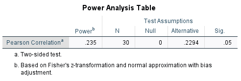 How to Write Interpretation for a Pearson Correlation – Power Analysis in SPSS?