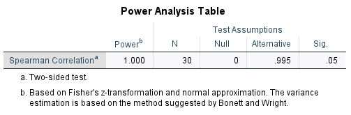 How to write the interpretation for a Spearman Power Analysis in SPSS?
