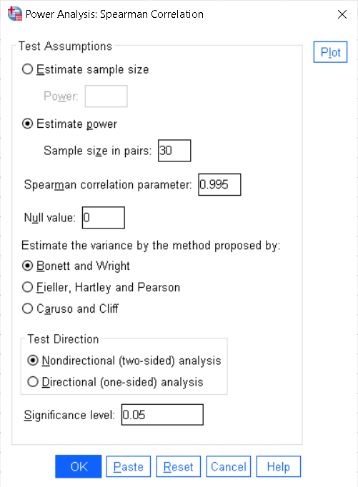 Analyze > Power Analysis > Correlation > Spearman Rank Order